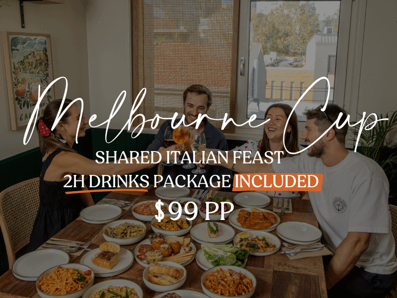Join us on Tuesday, 4 November for a $99 shared Italian feast with a 2-hour drinks package included (min. 4 people).